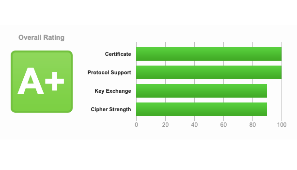 Our ecosystem achieves an A+ TLS security rating, reflecting usage of the highest modern security standards.